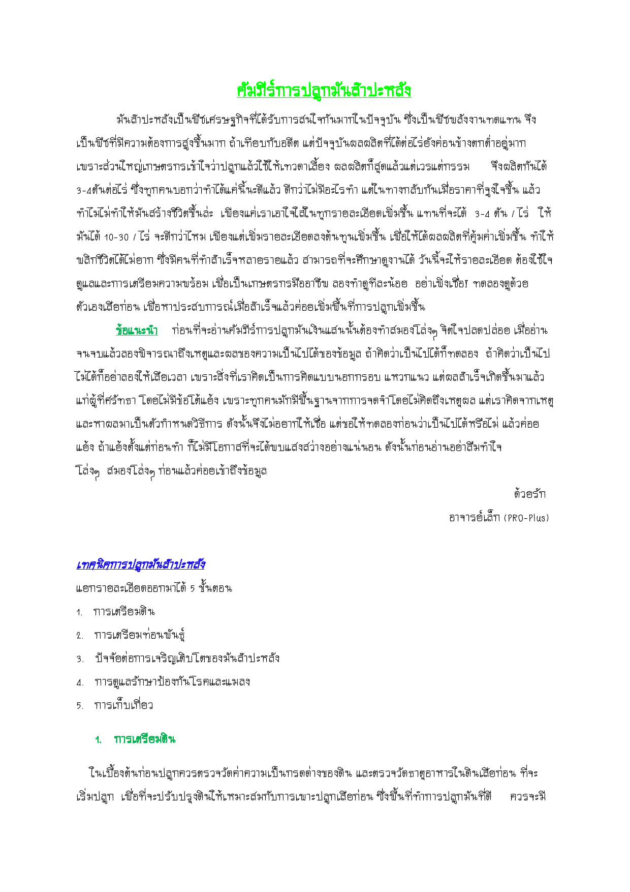 การปลูกมันสำปะหลัง 30ตัน ต่อไร่ ตามระบบโปรพลัส